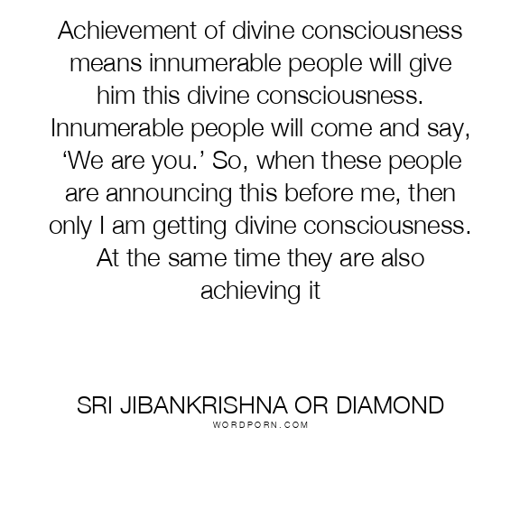 Achievement of divine consciousness means innumerable people will give him this divine consciousness. Innumerable people will come and say, ‘We are you.’ So, when these people are announcing this before me, then only I am getting divine consciousness. At the same time they are also achieving it