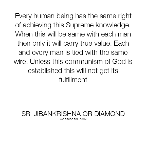 Every human being has the same right of achieving this Supreme knowledge. When this will be same with each man then only it will carry true value. Each and every man is tied with the same wire. Unless this communism of God is established this will not get its fulfillment