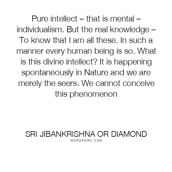 Pure intellect – that is mental – individualism. But the real knowledge – To know that I am all these. In such a manner every human being is so. What is this divine intellect? It is happening spontaneously in Nature and we are merely the seers. We cannot conceive this phenomenon