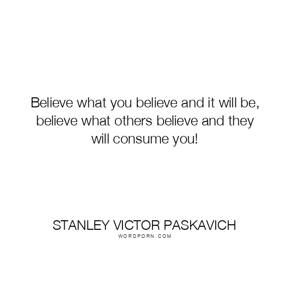 Believe what you believe and it will be, believe what others believe and they will consume you!
