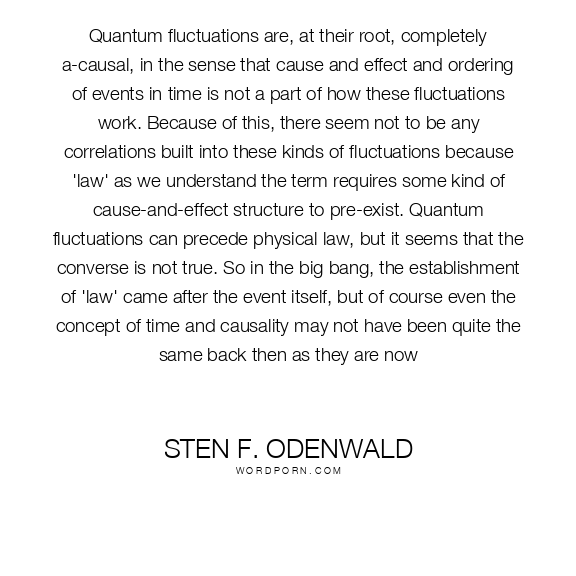 Quantum fluctuations are, at their root, completely a-causal, in the sense that cause and effect and ordering of events in time is not a part of how these fluctuations work. Because of this, there seem not to be any correlations built into these kinds of fluctuations because 'law' as we understand the term requires some kind of cause-and-effect structure to pre-exist. Quantum fluctuations can precede physical law, but it seems that the converse is not true. So in the big bang, the establishment of 'law' came after the event itself, but of course even the concept of time and causality may not have been quite the same back then as they are now