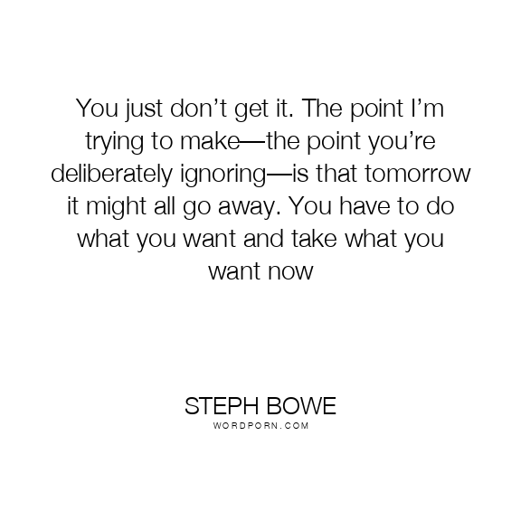 You just don’t get it. The point I’m trying to make—the point you’re deliberately ignoring—is that tomorrow it might all go away. You have to do what you want and take what you want now