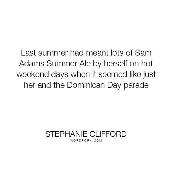 Last summer had meant lots of Sam Adams Summer Ale by herself on hot weekend days when it seemed like just her and the Dominican Day parade