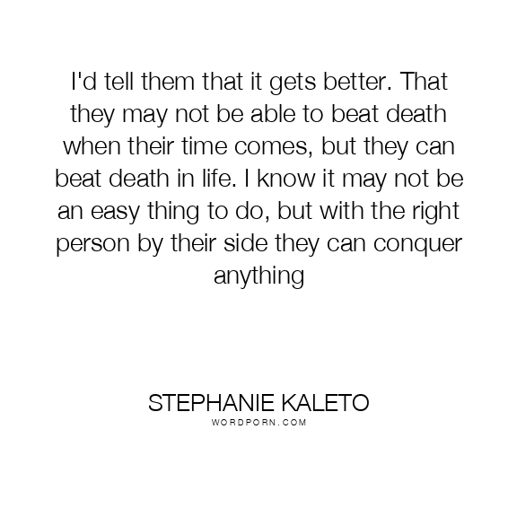 I'd tell them that it gets better. That they may not be able to beat death when their time comes, but they can beat death in life. I know it may not be an easy thing to do, but with the right person by their side they can conquer anything