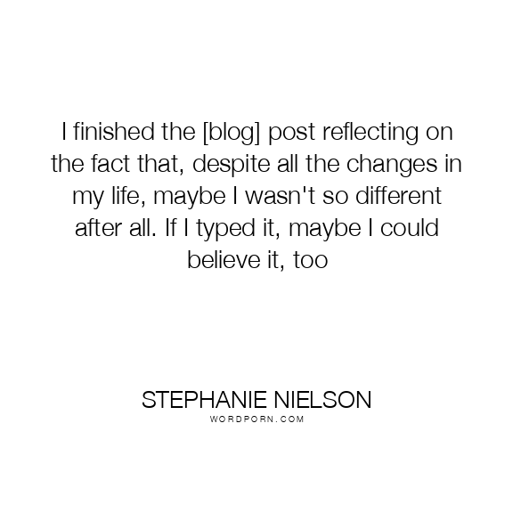 I finished the [blog] post reflecting on the fact that, despite all the changes in my life, maybe I wasn't so different after all. If I typed it, maybe I could believe it, too