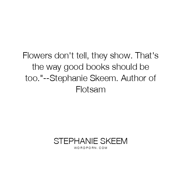 Copy Image Flowers don't tell, they show. That's the way good books should be too."--Stephanie Skeem. Author of Flotsam Moms Typewriter A A SAVE THIS IMAGE