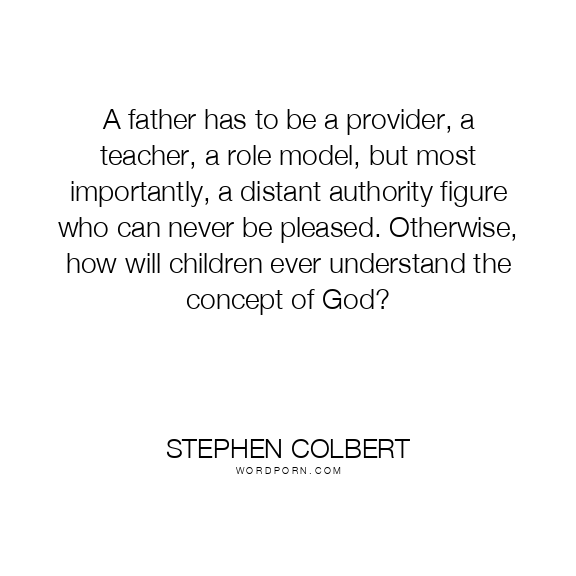 A father has to be a provider, a teacher, a role model, but most importantly, a distant authority figure who can never be pleased. Otherwise, how will children ever understand the concept of God?