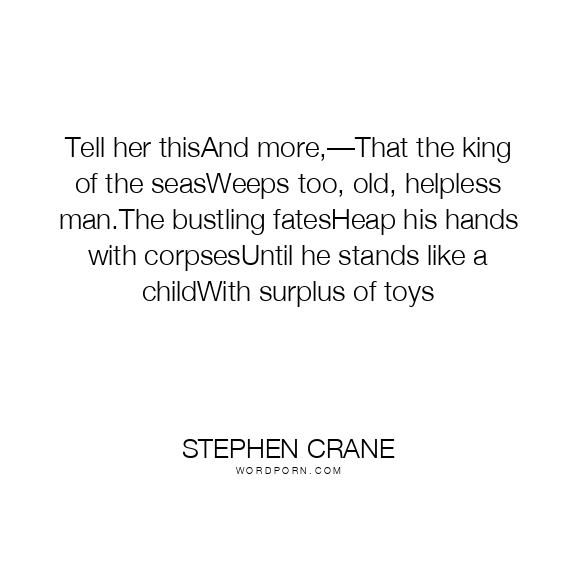 Tell her thisAnd more,—That the king of the seasWeeps too, old, helpless man.The bustling fatesHeap his hands with corpsesUntil he stands like a childWith surplus of toys
