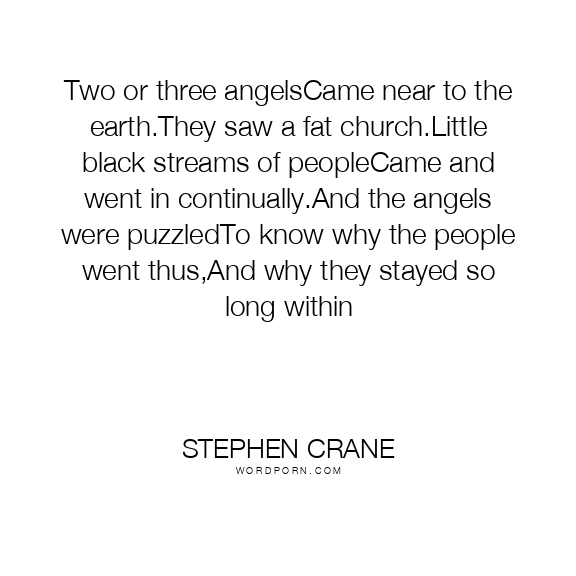 Two or three angelsCame near to the earth.They saw a fat church.Little black streams of peopleCame and went in continually.And the angels were puzzledTo know why the people went thus,And why they stayed so long within