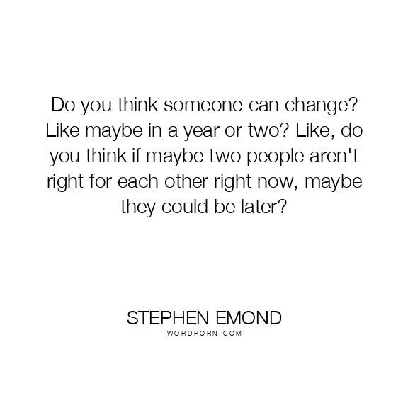 Do you think someone can change? Like maybe in a year or two? Like, do you think if maybe two people aren't right for each other right now, maybe they could be later?