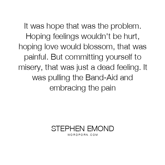 It was hope that was the problem. Hoping feelings wouldn't be hurt, hoping love would blossom, that was painful. But committing yourself to misery, that was just a dead feeling. It was pulling the Band-Aid and embracing the pain