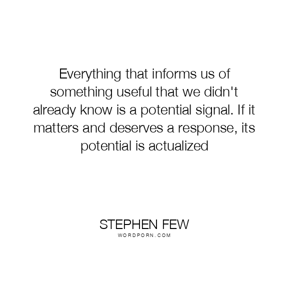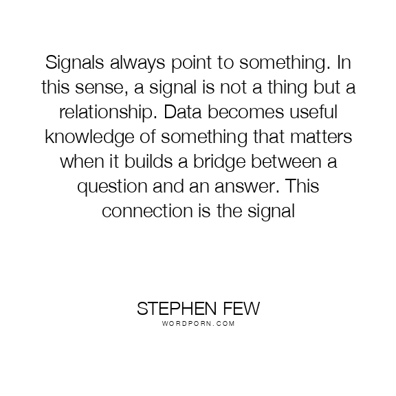 Signals always point to something. In this sense, a signal is not a thing but a relationship. Data becomes useful knowledge of something that matters when it builds a bridge between a question and an answer. This connection is the signal