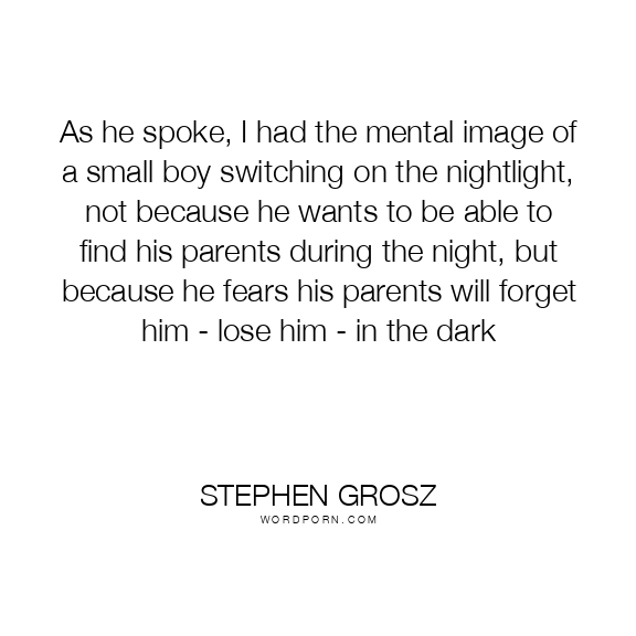 As he spoke, I had the mental image of a small boy switching on the nightlight, not because he wants to be able to find his parents during the night, but because he fears his parents will forget him - lose him - in the dark