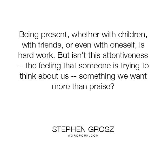 Being present, whether with children, with friends, or even with oneself, is hard work. But isn't this attentiveness -- the feeling that someone is trying to think about us -- something we want more than praise?