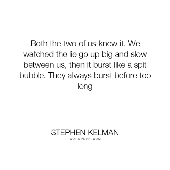 Both the two of us knew it. We watched the lie go up big and slow between us, then it burst like a spit bubble. They always burst before too long