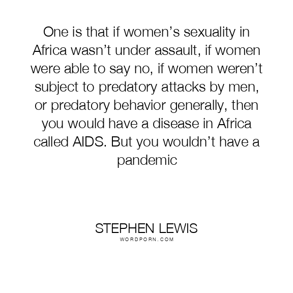 One is that if women’s sexuality in Africa wasn’t under assault, if women were able to say no, if women weren’t subject to predatory attacks by men, or predatory behavior generally, then you would have a disease in Africa called AIDS. But you wouldn’t have a pandemic