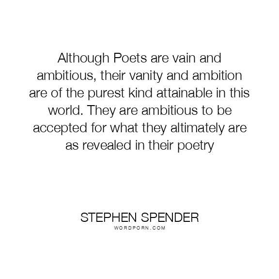 Although Poets are vain and ambitious, their vanity and ambition are of the purest kind attainable in this world. They are ambitious to be accepted for what they altimately are as revealed in their poetry