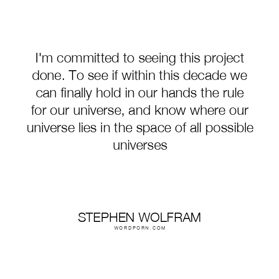I'm committed to seeing this project done. To see if within this decade we can finally hold in our hands the rule for our universe, and know where our universe lies in the space of all possible universes