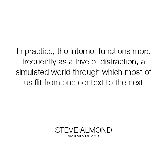 In practice, the Internet functions more frequently as a hive of distraction, a simulated world through which most of us flit from one context to the next