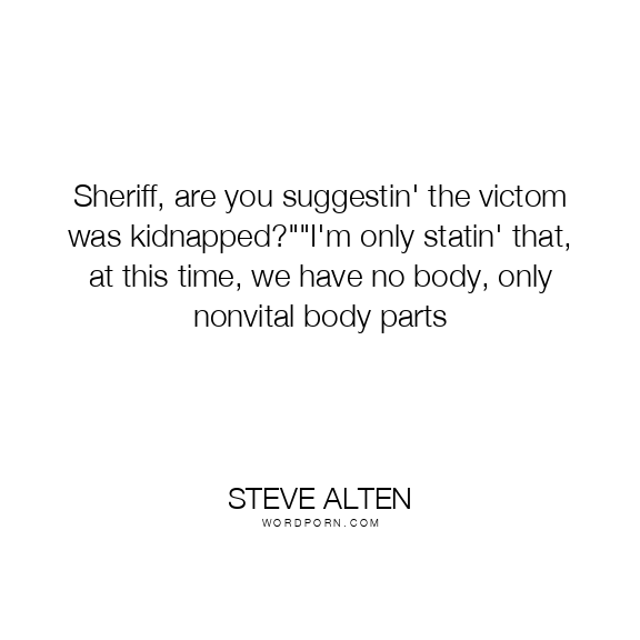 Sheriff, are you suggestin' the victom was kidnapped?""I'm only statin' that, at this time, we have no body, only nonvital body parts