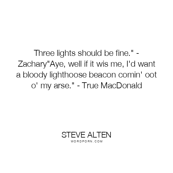 Three lights should be fine." - Zachary"Aye, well if it wis me, I'd want a bloody lighthoose beacon comin' oot o' my arse." - True MacDonald