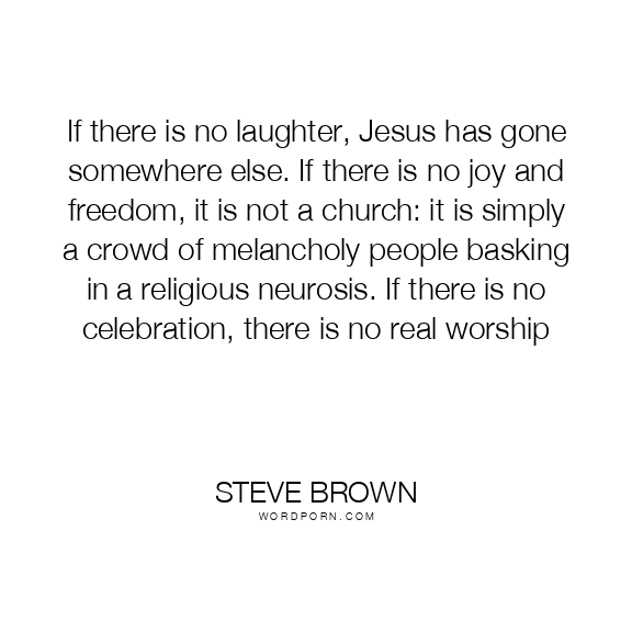 If there is no laughter, Jesus has gone somewhere else. If there is no joy and freedom, it is not a church: it is simply a crowd of melancholy people basking in a religious neurosis. If there is no celebration, there is no real worship