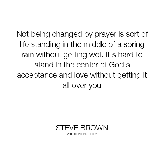 Not being changed by prayer is sort of life standing in the middle of a spring rain without getting wet. It's hard to stand in the center of God's acceptance and love without getting it all over you