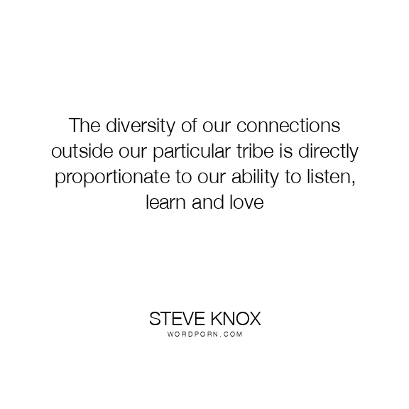 The diversity of our connections outside our particular tribe is directly proportionate to our ability to listen, learn and love