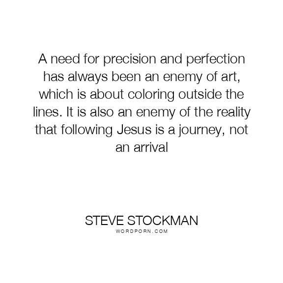 A need for precision and perfection has always been an enemy of art, which is about coloring outside the lines. It is also an enemy of the reality that following Jesus is a journey, not an arrival