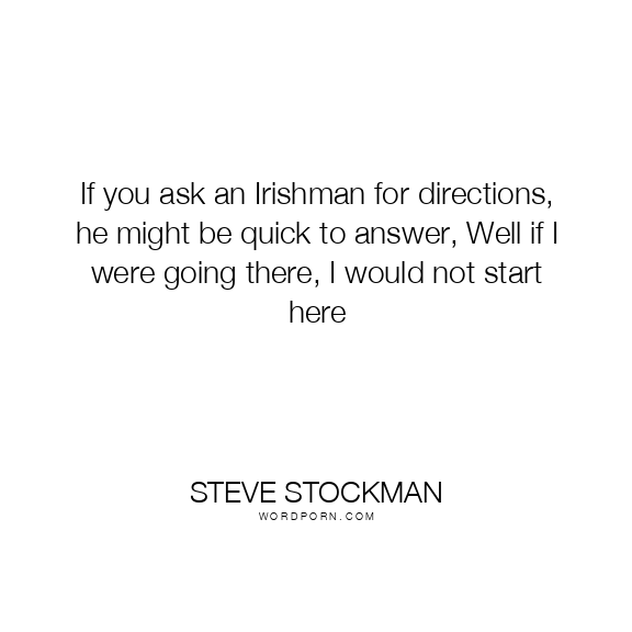 If you ask an Irishman for directions, he might be quick to answer, Well if I were going there, I would not start here