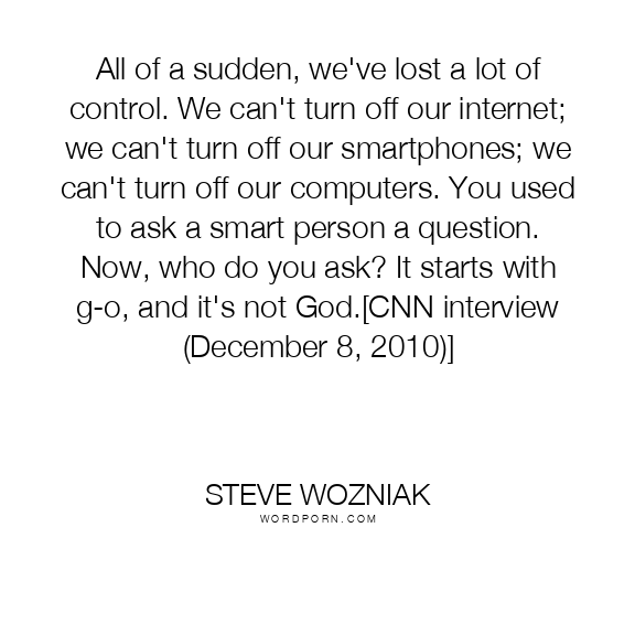 All of a sudden, we've lost a lot of control. We can't turn off our internet; we can't turn off our smartphones; we can't turn off our computers. You used to ask a smart person a question. Now, who do you ask? It starts with g-o, and it's not God.[CNN interview (December 8, 2010)]