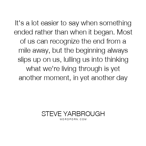 It's a lot easier to say when something ended rather than when it began. Most of us can recognize the end from a mile away, but the beginning always slips up on us, lulling us into thinking what we're living through is yet another moment, in yet another day
