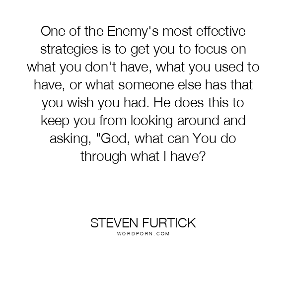 One of the Enemy's most effective strategies is to get you to focus on what you don't have, what you used to have, or what someone else has that you wish you had. He does this to keep you from looking around and asking, "God, what can You do through what I have?