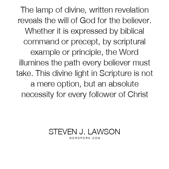 The lamp of divine, written revelation reveals the will of God for the believer. Whether it is expressed by biblical command or precept, by scriptural example or principle, the Word illumines the path every believer must take. This divine light in Scripture is not a mere option, but an absolute necessity for every follower of Christ