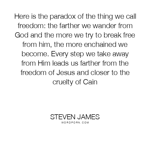 Here is the paradox of the thing we call freedom: the farther we wander from God and the more we try to break free from him, the more enchained we become. Every step we take away from Him leads us farther from the freedom of Jesus and closer to the cruelty of Cain