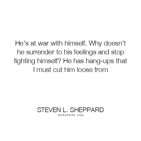 He's at war with himself. Why doesn't he surrender to his feelings and stop fighting himself? He has hang-ups that I must cut him loose from