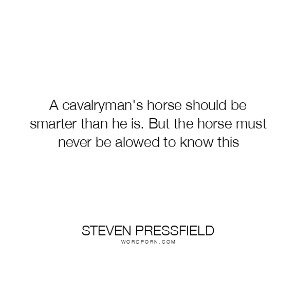 A cavalryman's horse should be smarter than he is. But the horse must never be alowed to know this
