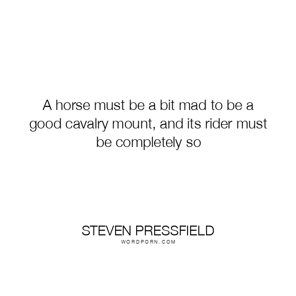A horse must be a bit mad to be a good cavalry mount, and its rider must be completely so