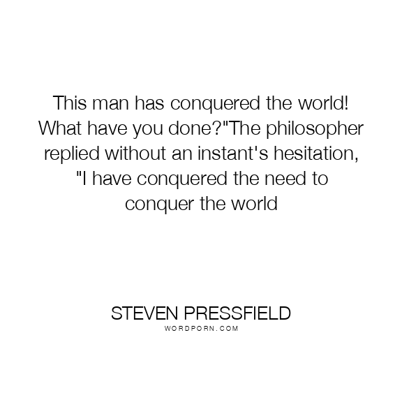 This man has conquered the world! What have you done?"The philosopher replied without an instant's hesitation, "I have conquered the need to conquer the world