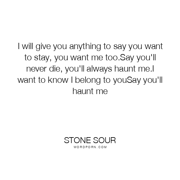 Copy Image I will give you anything to say you want to stay, you want me too.Say you'll never die, you'll always haunt me.I want to know I belong to youSay you'll haunt me Moms Typewriter A A SAVE THIS IMAGE