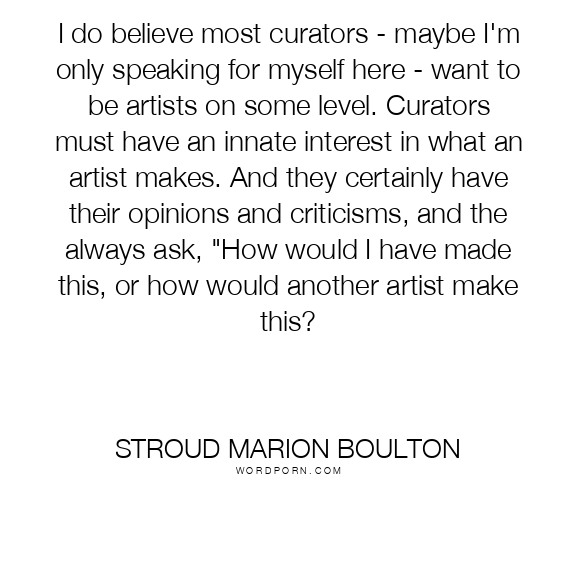 I do believe most curators - maybe I'm only speaking for myself here - want to be artists on some level. Curators must have an innate interest in what an artist makes. And they certainly have their opinions and criticisms, and the always ask, "How would I have made this, or how would another artist make this?