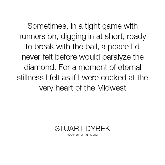 Sometimes, in a tight game with runners on, digging in at short, ready to break with the ball, a peace I'd never felt before would paralyze the diamond. For a moment of eternal stillness I felt as if I were cocked at the very heart of the Midwest