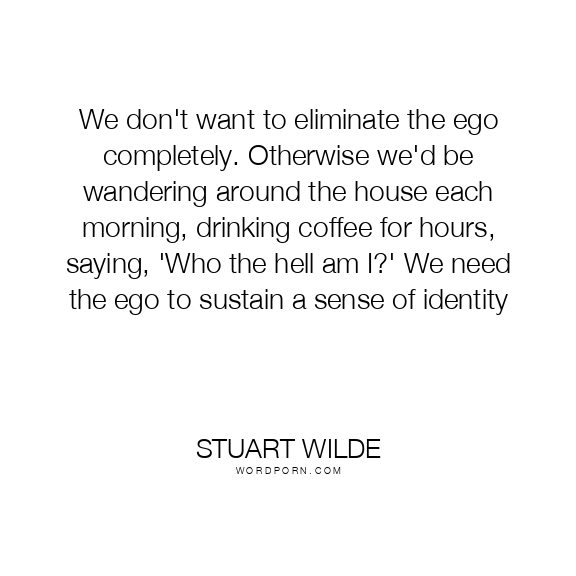 We don't want to eliminate the ego completely. Otherwise we'd be wandering around the house each morning, drinking coffee for hours, saying, 'Who the hell am I?' We need the ego to sustain a sense of identity