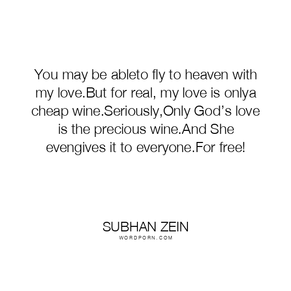 You may be ableto fly to heaven with my love.But for real, my love is onlya cheap wine.Seriously,Only God’s love is the precious wine.And She evengives it to everyone.For free!
