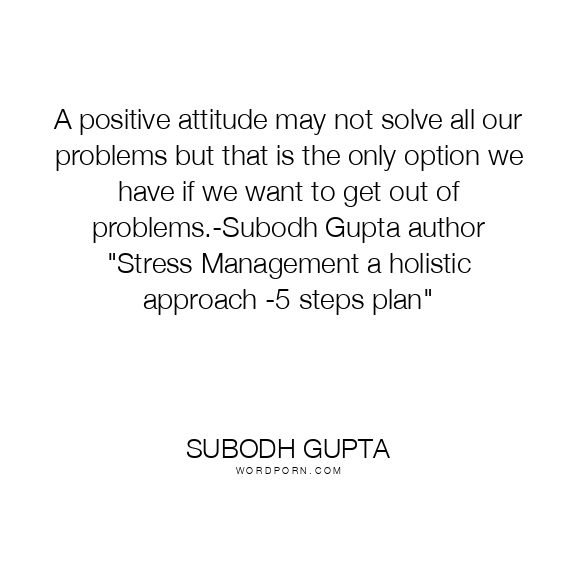 A positive attitude may not solve all our problems but that is the only option we have if we want to get out of problems.-Subodh Gupta author "Stress Management a holistic approach -5 steps plan"