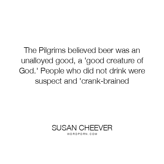 Copy Image The Pilgrims believed beer was an unalloyed good, a 'good creature of God.' People who did not drink were suspect and 'crank-brained Moms Typewriter A A SAVE THIS IMAGE