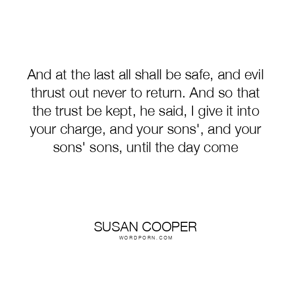 And at the last all shall be safe, and evil thrust out never to return. And so that the trust be kept, he said, I give it into your charge, and your sons', and your sons' sons, until the day come