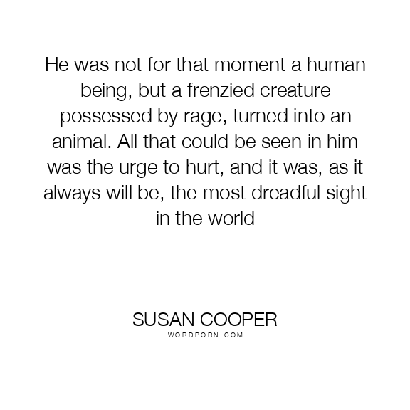 He was not for that moment a human being, but a frenzied creature possessed by rage, turned into an animal. All that could be seen in him was the urge to hurt, and it was, as it always will be, the most dreadful sight in the world