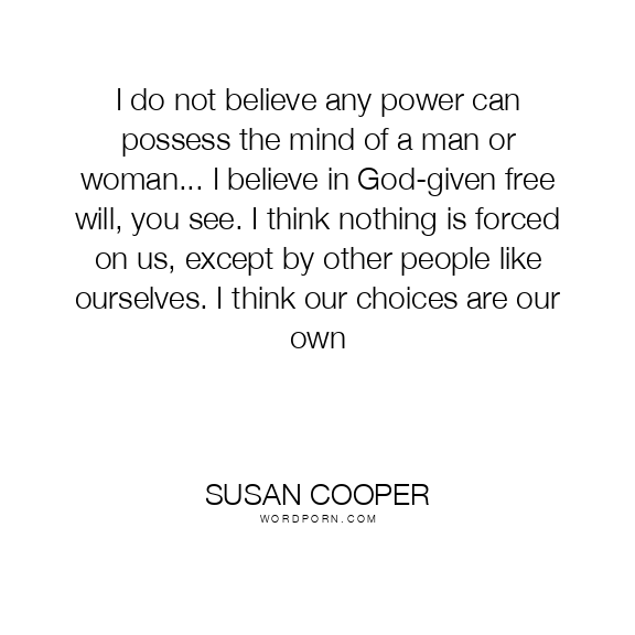 I do not believe any power can possess the mind of a man or woman... I believe in God-given free will, you see. I think nothing is forced on us, except by other people like ourselves. I think our choices are our own