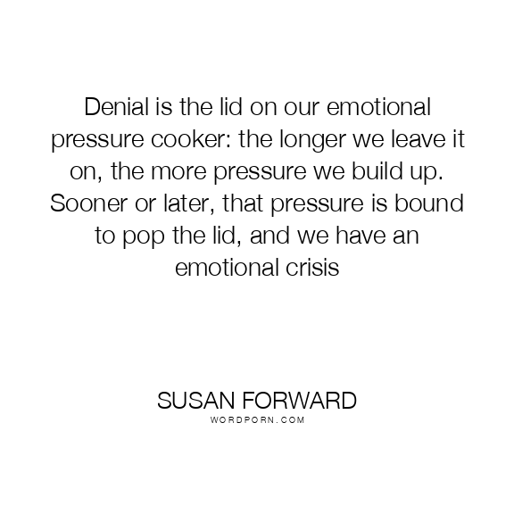 Denial is the lid on our emotional pressure cooker: the longer we leave it on, the more pressure we build up. Sooner or later, that pressure is bound to pop the lid, and we have an emotional crisis